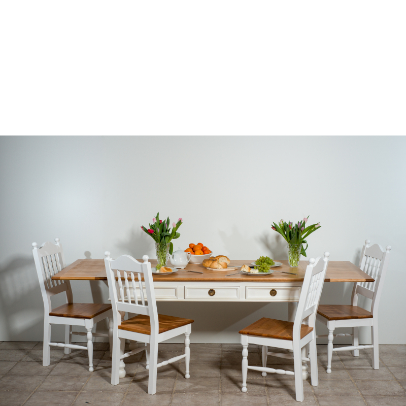 Die Möbel werden normalerweise aus massivem Kiefernholz hergestellt, es ist aber möglich, die Holzart zu ändern ( z. B. Eiche, Esche, Buche usw.).