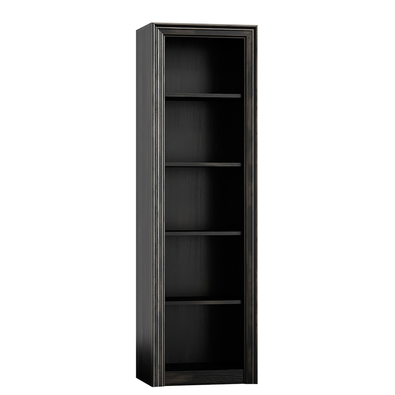 Ein schmales Bücherregal ohne Schubladen der Kollektion Gravis, die sich durch einen minimalistischen Stil und eine Leiste an jeder Kante auszeichnet, ist ein ideales Möbelstück für Bücher und Ordner.