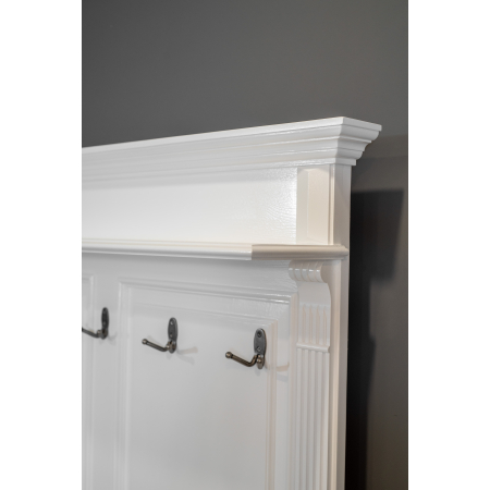 Eine größere Garderobe mit vier Schubladen und einem Regal der Kollektion Napo-Leon, die sich durch klassische, mit Ornamenten und Verzierungen versehene Linien auszeichnet.