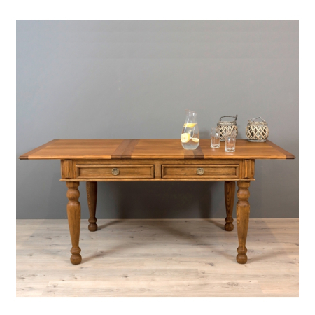 ...Ein ausziehbarer Tisch mit zwei Schubladen und einer Einlegeplatte (50 cm) der Kollektion...