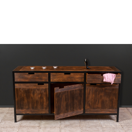 Sideboard groß im Industriedesign 3- türig 3 Schubladen massiv Kiefer in Kombination mit Metall