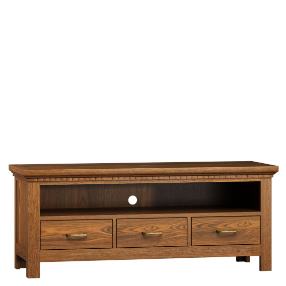 Ein großer TV-Schrank mit drei Schubladen der Kollektion Simple, die sich durch schlichte Linie auszeichnet und mit oder ohne Einkerbungen verfügbar ist, ist ein ideales Möbelstück für Fernseher jeder Größe.