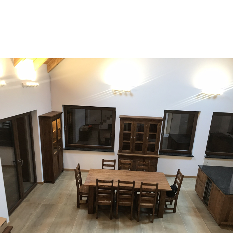Die Möbel werden normalerweise aus massivem Kiefernholz hergestellt, es ist aber möglich, die Holzart zu ändern ( z. B. Eiche, Esche, Buche usw.).